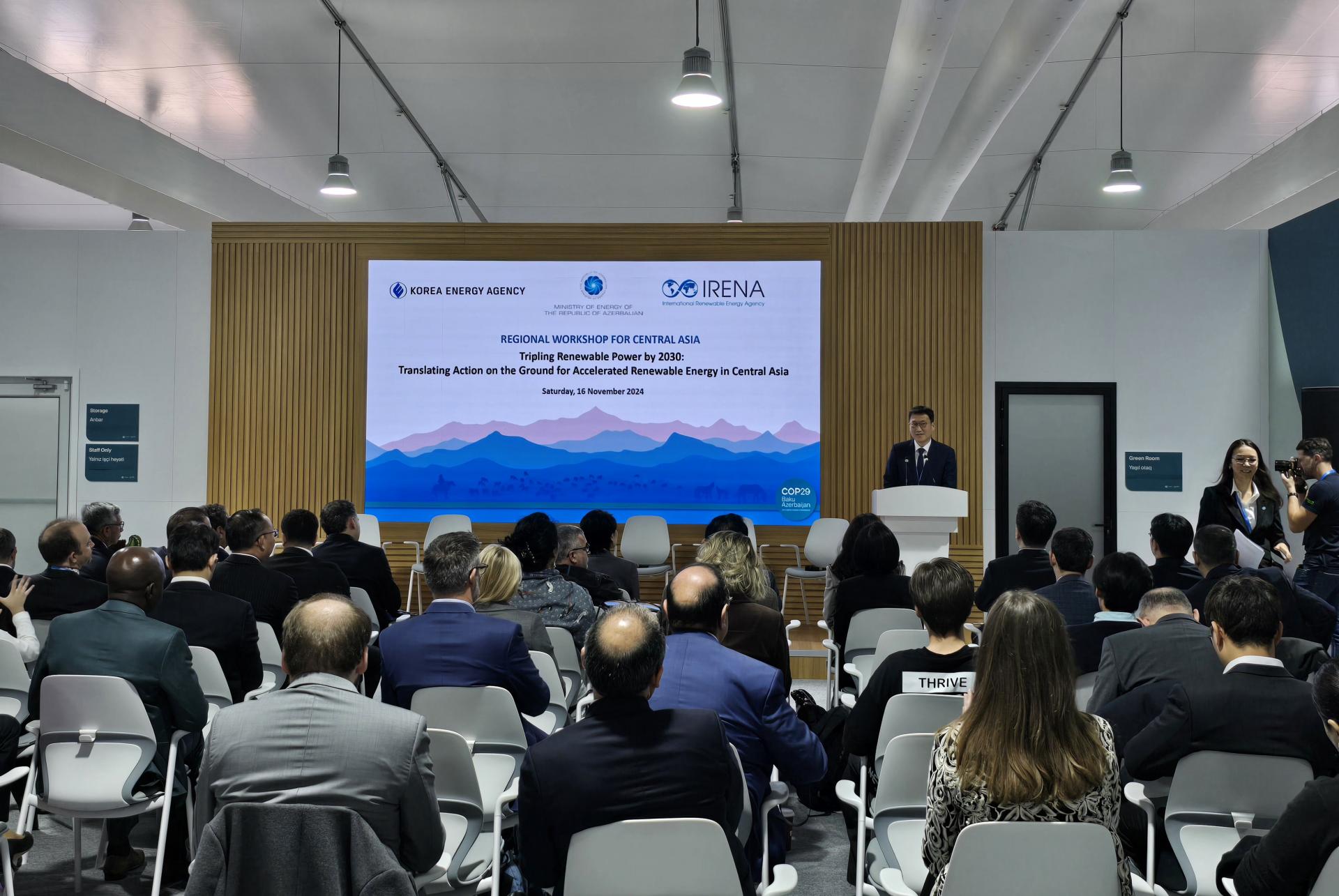 기후변화협약 당사국총회(COP29)를 계기로 진행된 ‘IRENA Energy Transition Investment Forum’의 일환으로 열렸다.워크숍에는 아제르바이잔 재생에너지청, 아시아개발은행(ADB), 세계은행(WB)과 국내 재생에너지 기업 등이 패널로 참석했다. 참석자들은 중앙아시아 재생에너지 가속화를 위한 실질적인 조치를 논의했다. 특히, △협력적 개발과 비즈니스 교류를 통한 재생에너지 3배 증가 △신재생에너지 통합을 위한 전력망 인프라 및 전기저장장치 업그레이드에 대해 집중적으로 토론했다.